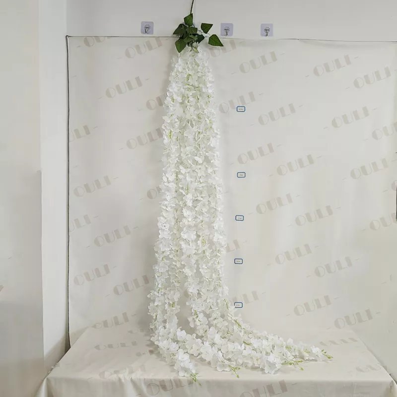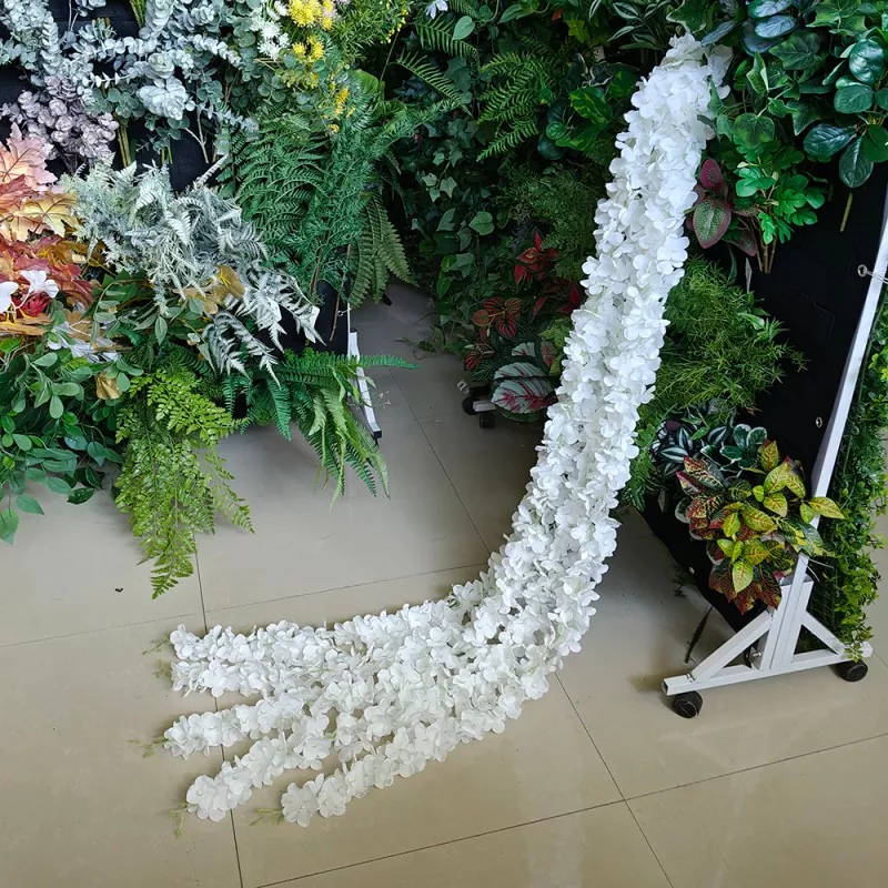 พวงมาลัย Wisteria Flowers เทียมนี้มีความยาว 180 ซม. สไตล์ยาวเป็นพิเศษ หากใช้เป็นคู่มันสามารถครอบคลุมความสูงทั้งหมดของห้อง